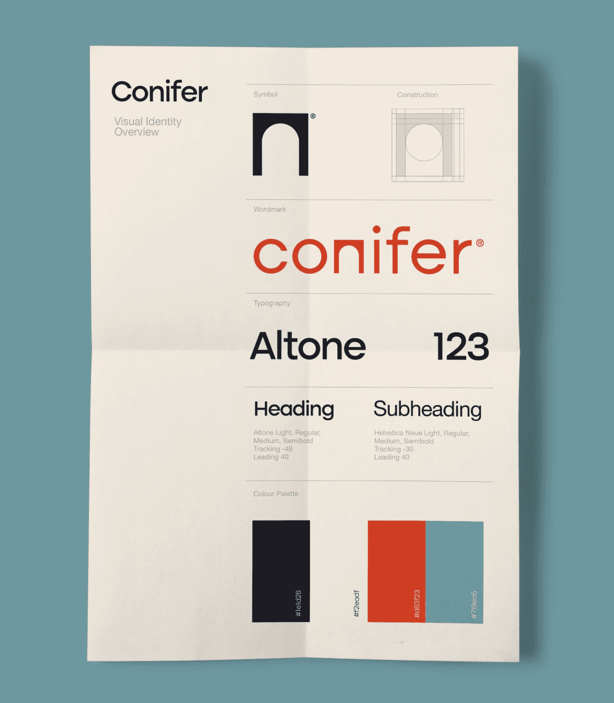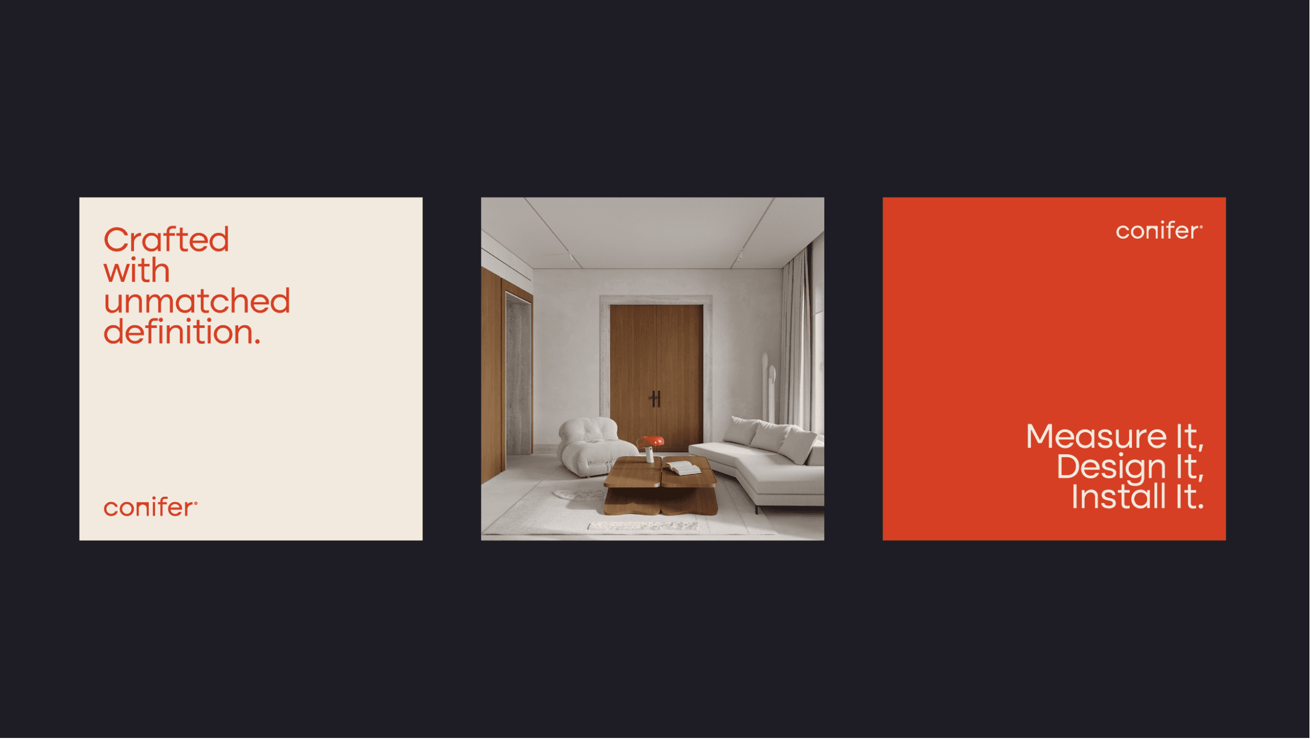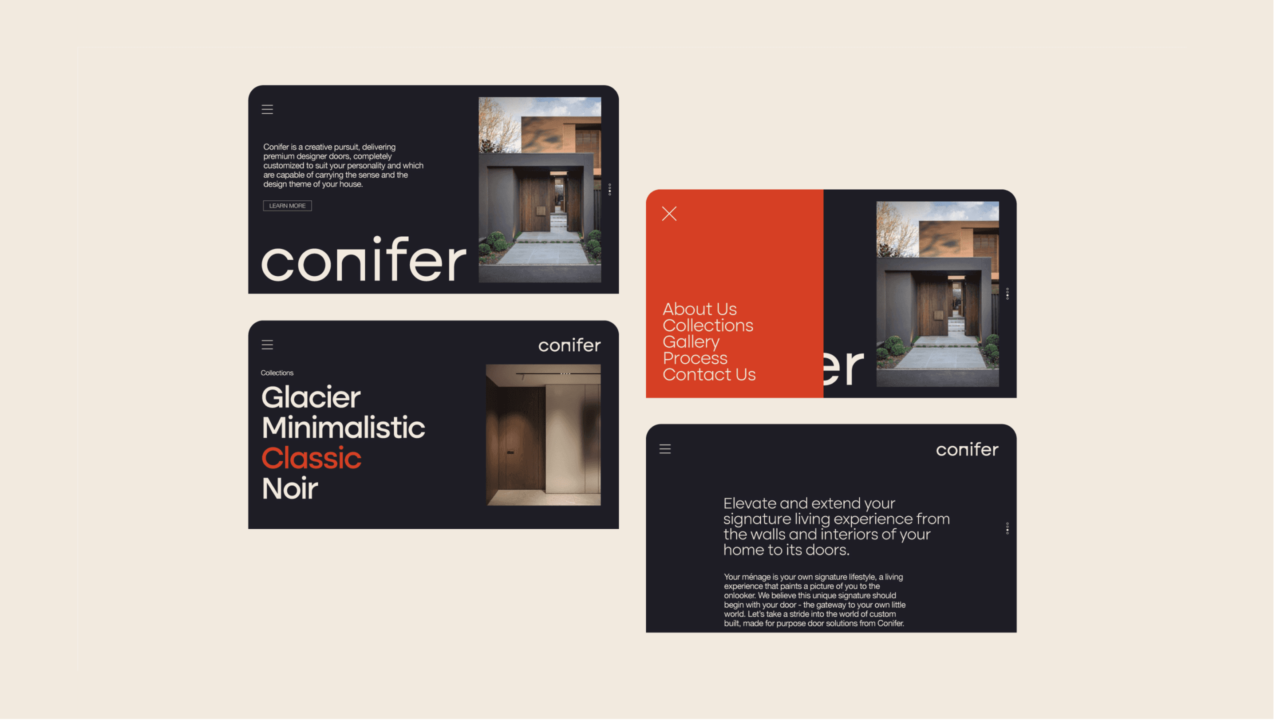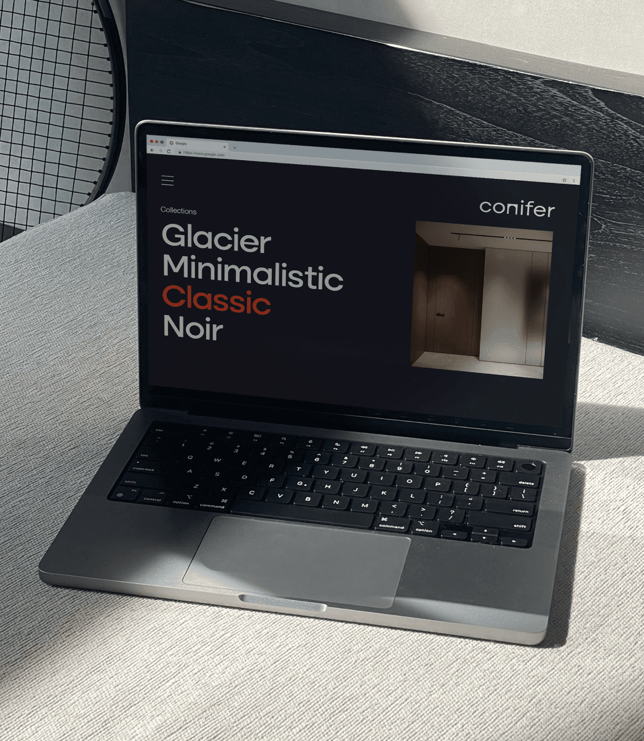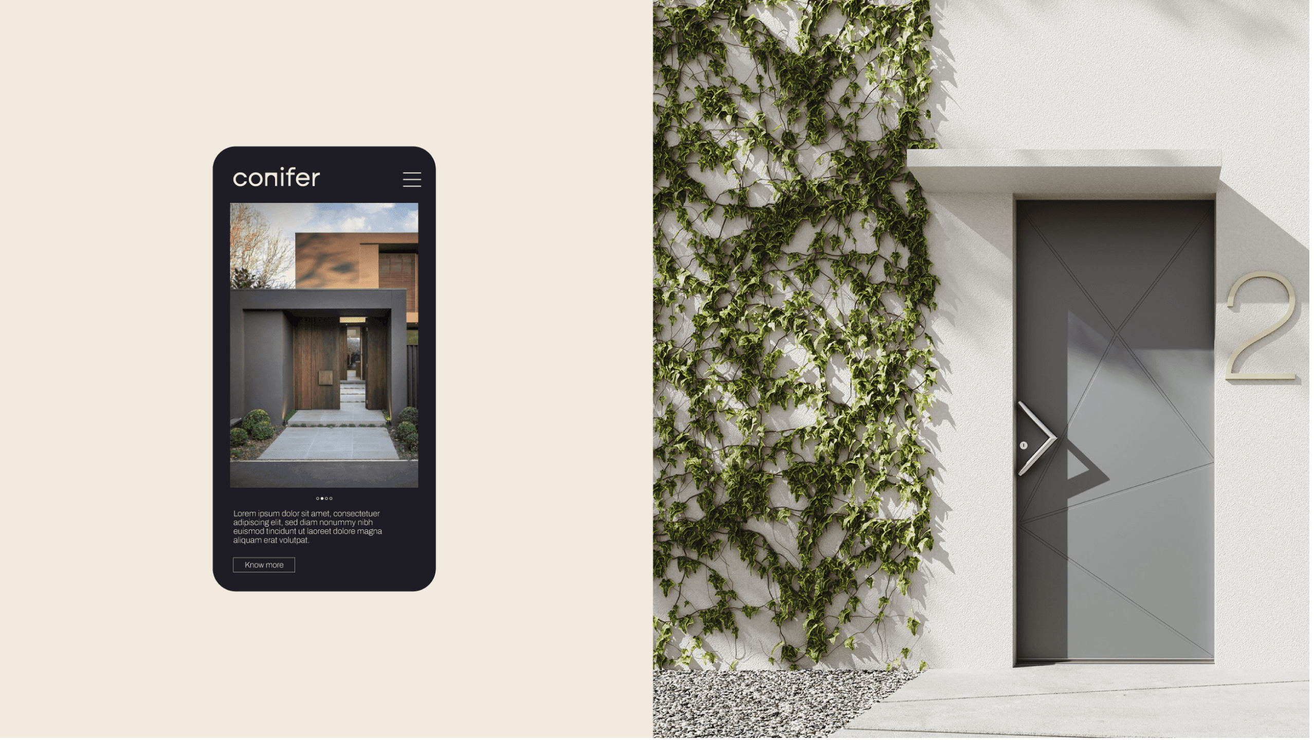 Conifer is a creative pursuit started by two architects focused on craft, materiality, and spatial detail. As a premium designer doors brand, it needed an identity that reflected architectural thinking and bespoke design, while clearly separating it from mass furniture and interior brands. The brand had to feel precise, considered, and credible to architects, designers, and design-led homeowners.