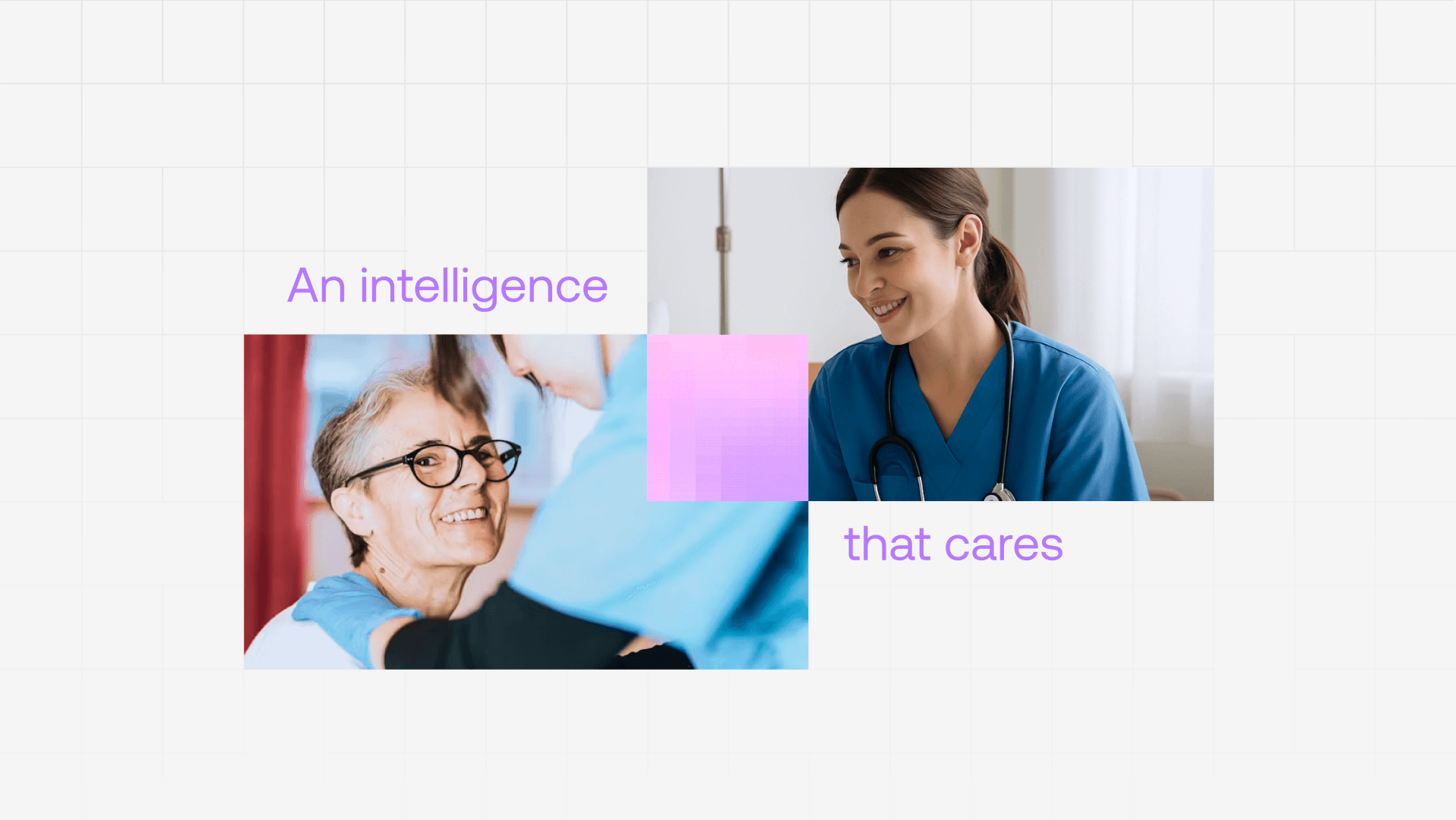 The logo draws from neural networks, using uneven, connected nodes to represent a living system that learns and adapts. The visual system gives form to invisible intelligence through soft colours, modular grids, and subtle pixel textures. Nothing shouts. Everything supports. The result is a brand that feels intelligent, human, and dependable, designed to stand behind care teams, not compete for attention.