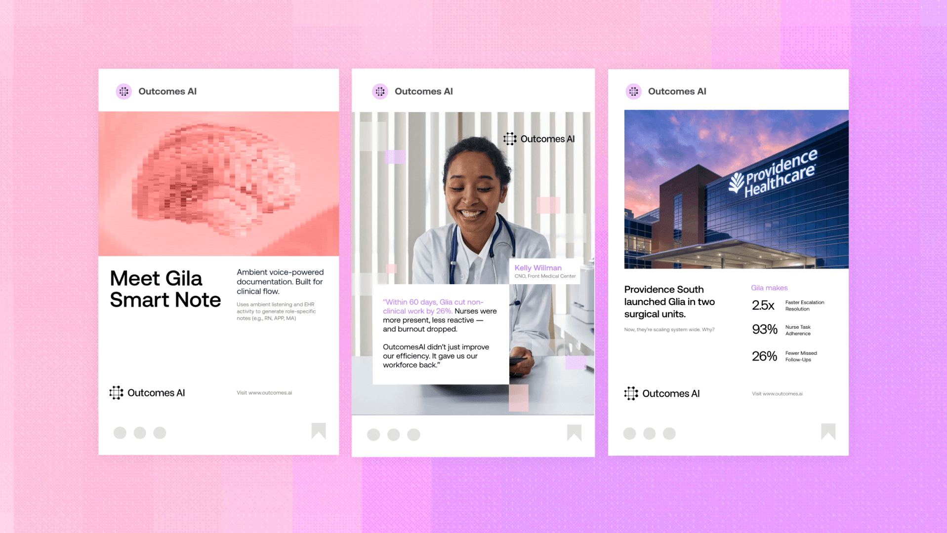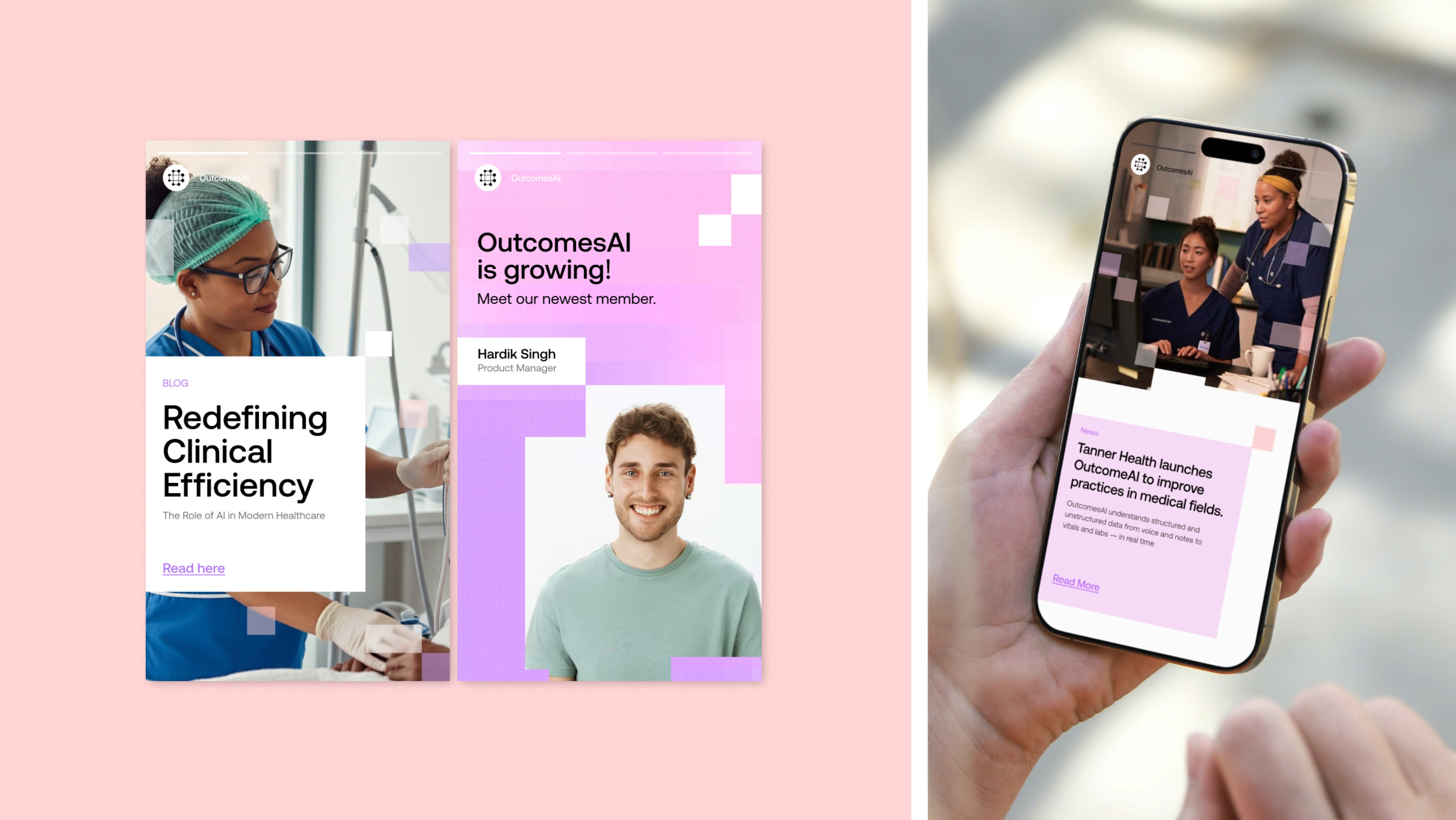 The product was powerful, but the brand felt technical and abstract. It undersold OutcomesAI’s real value by focusing on AI instead of the people it was built for. The identity needed to build trust, feel human, and clearly communicate its role in supporting care teams.